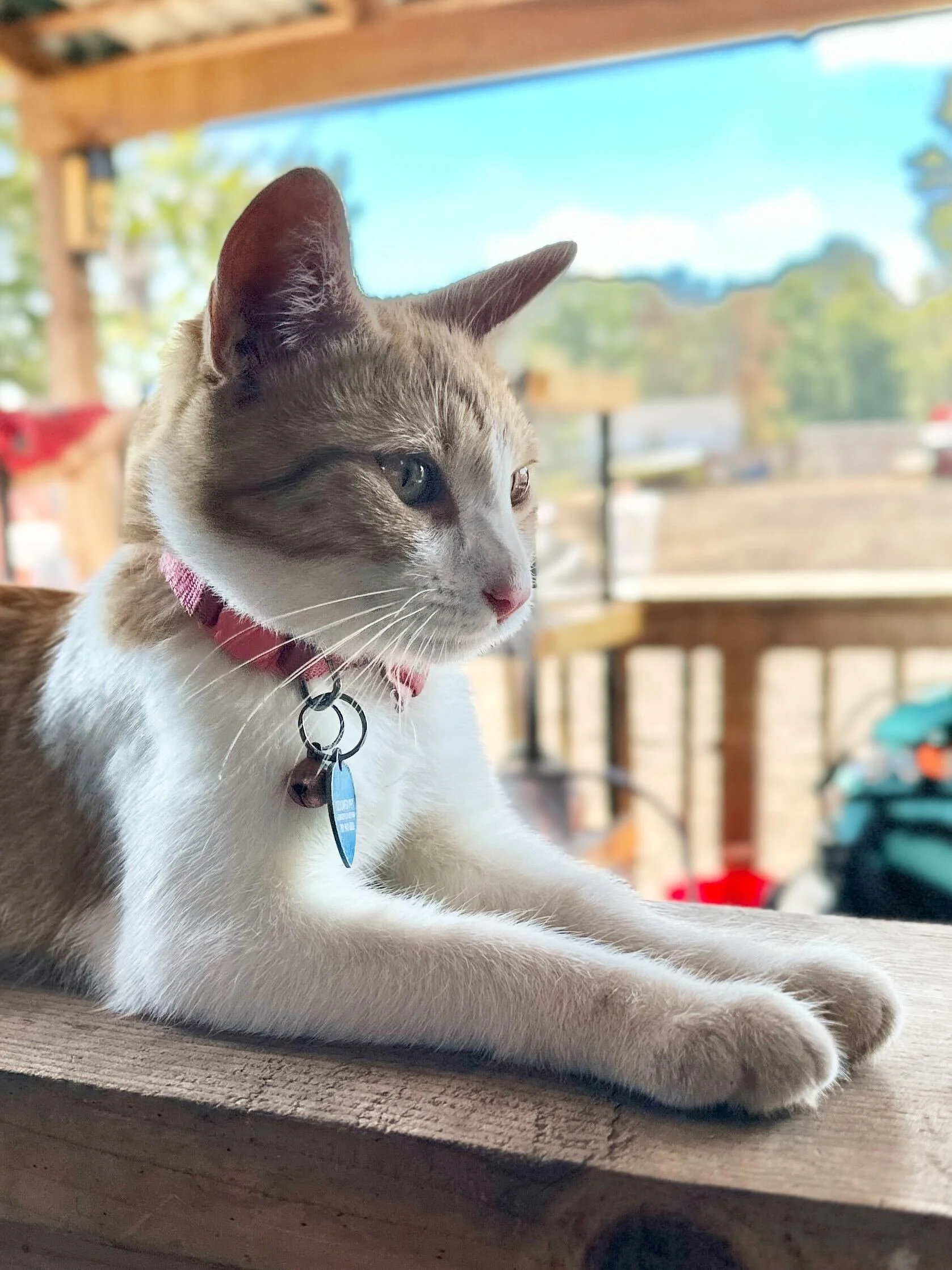 Timothy is the friendliest and sweetest cat at the farm. He will come to greet all visitors to the farm and never gets enough of pets and attention. He is so sweet, he will even let you pet his tummy, which is rare for a cat. He is also the most rotund cat at the farm and spends whatever time he is not being pet, eating and sleeping in the sun.