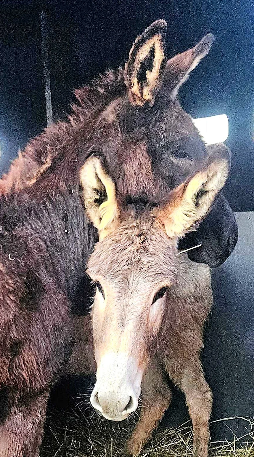 Hope & Serenity Farm Sanctuary is home to numerous donkeys and mules who have been rescued from kill lots, where they were in danger of being sent to slaughter. These gentle and resilient creatures have found a safe and loving refuge at our sanctuary, where they are free to roam, play, and receive the care they deserve. Each of these animals has a unique story of survival and hope, and we are grateful to have the opportunity to provide them with a forever home filled with compassion and kindness.
